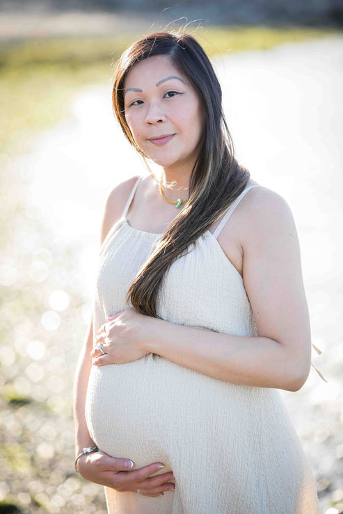 Outdoors or in a studio, depending on your preference. Studio sessions can allow for maternity boudoir styled images with more exposed skin.